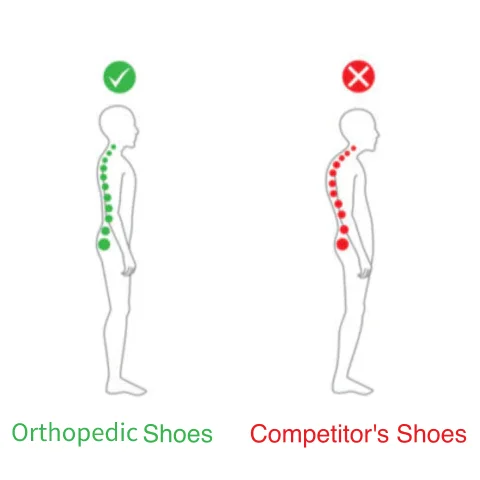 Nasze specjalnie zaprojektowane i wygodne buty z podparciem idealnie łagodzą ból stóp, ostrogę piętową, płaskostopie, zapalenie ścięgna Achillesa, zapalenie rozcięgna podeszwowego, ból kolana, ból pleców i inne nieprzyjemne dolegliwości.
