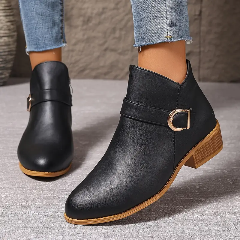 - Niskie, casualowe botki za kostkę z podwójnym zamkiem po bokach