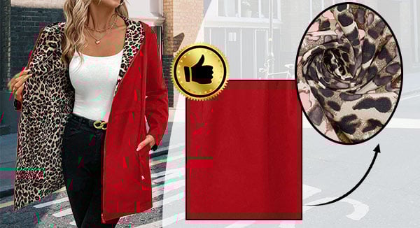 Dwustronny szyk: wyrazista czerwień na zewnątrz, modny wzór w panterkę wewnątrz