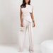 Te spodnie z szerokimi nogawkami z wysokim stanem: zaprojektowane z dopasowaną wysoką talią i szerokimi nogawkami, te spodnie wydłużają nogi i zapewniają zrelaksowany, a jednocześnie wyrafinowany krój. Zapewniają styl i wygodę, dzięki czemu idealnie nadają się na różne okazje.