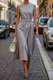 Elegancka damska sukienka z stałym kolorem w talii. Dostępne w wielu kolorach.