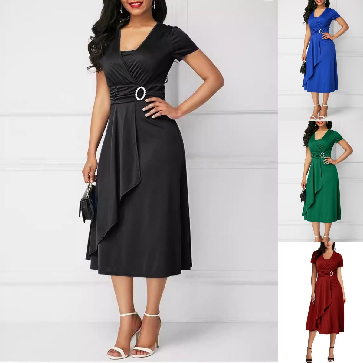 Pakiet zawiera: 1 * Asymetryczna sukienka damska z marszczonym dołem